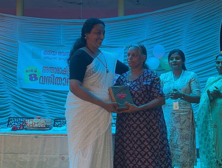 Maria Bhavan Charitable Trust celebrated International Women’s Day on March 8, 2026, honoring Chairperson Mrs. Nirmala Santhosh, dedicated staff, and residents while highlighting women’s empowerment and 28 years of compassionate service. 🌸